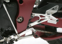 | ギルズツーリングから、レースへの実戦投入のために開発された新型バックステップ「FACTOR-X」が、いよいよ登場です!シンプルな構造で、軽量ながらも高剛性を実現。ヨーロッパのスーパーバイク選手権から得たノウハウのもと、転倒破損時のステップを素早く取り外すことができるシステムを採用しています。 |